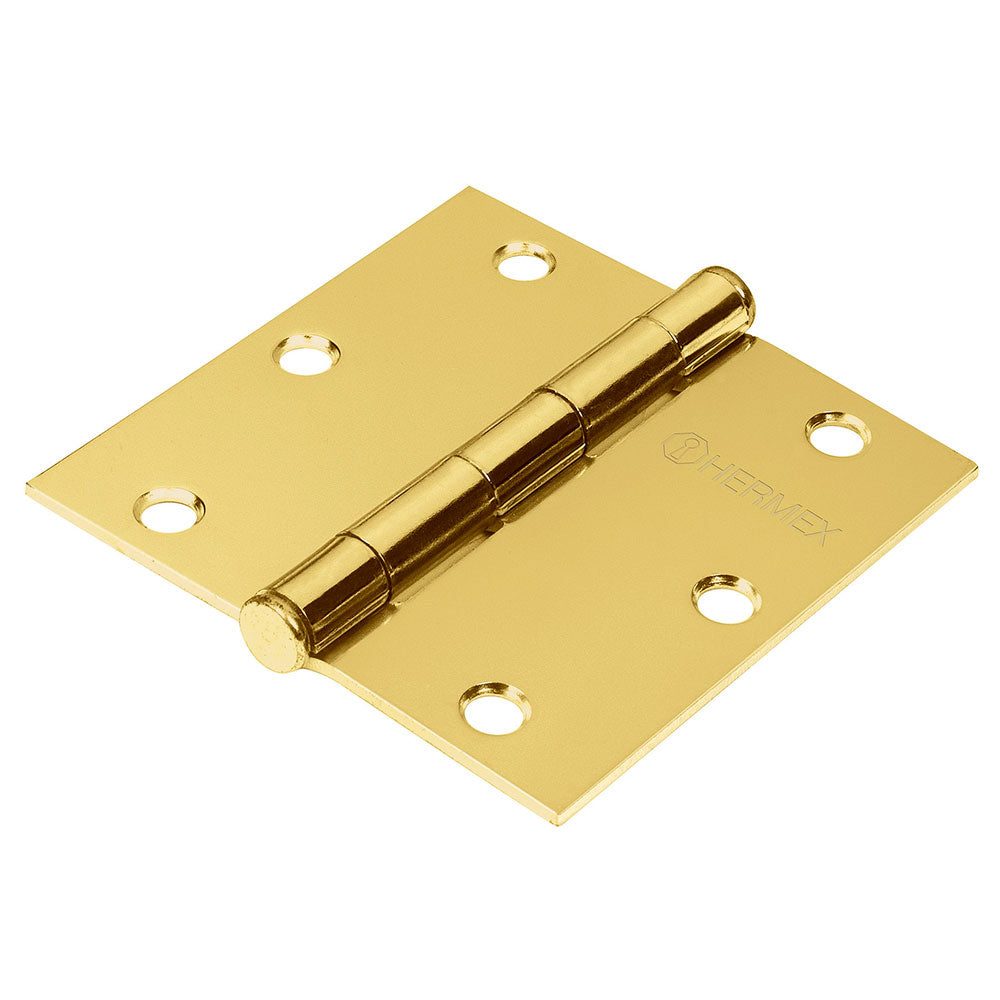 Bisagra cuadrada 3-1/2' acero latonado, cabeza plana, Hermex