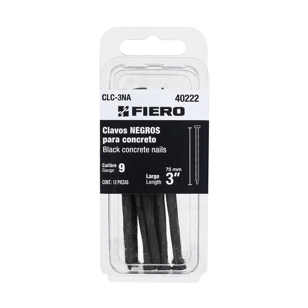 Blíster con 12 clavos negros para concreto 3', Fiero