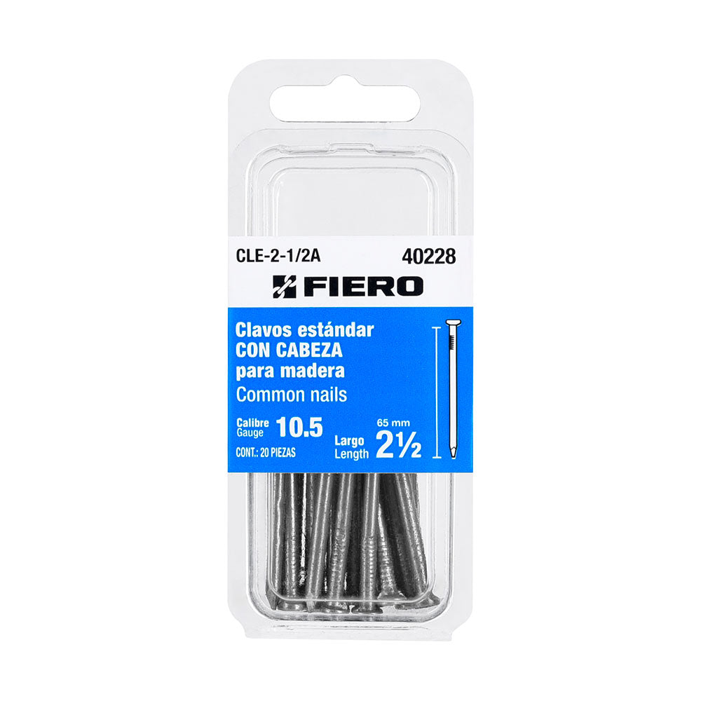 Blíster con 20 clavos estándar 2-1/2' con cabeza, Fiero