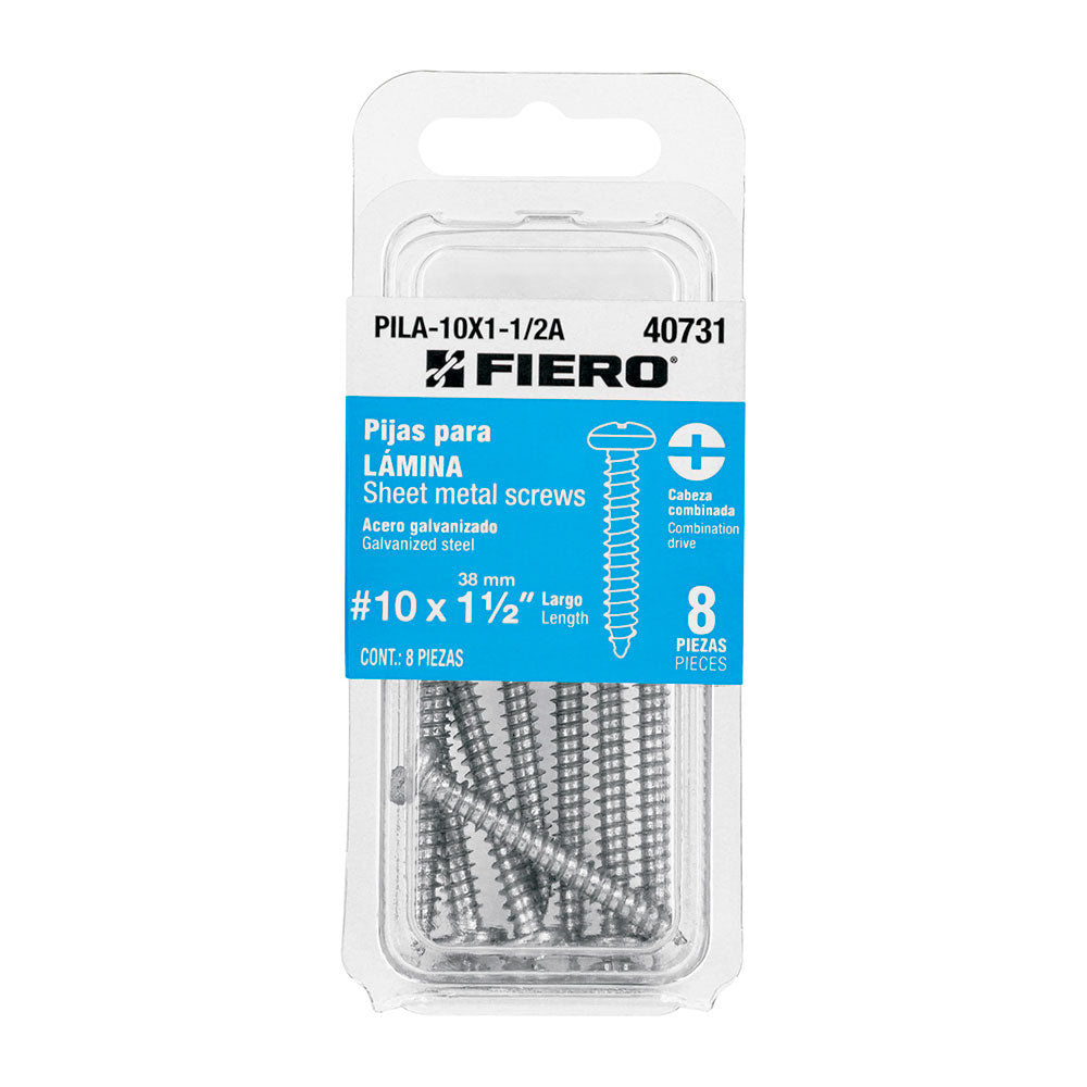 Blíster con 8 pijas para lámina, #10 x 1-1/2', Fiero