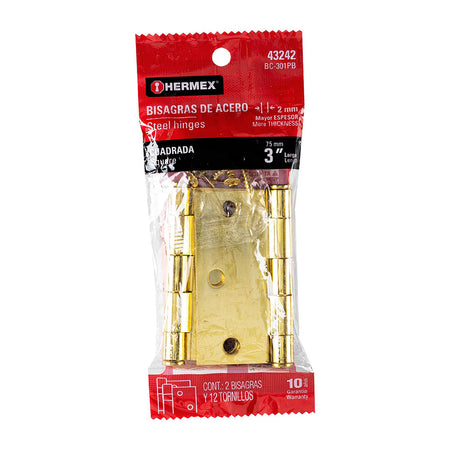 Bolsa c/2 bisagras cuadradas de 3', latonado, cabeza plana