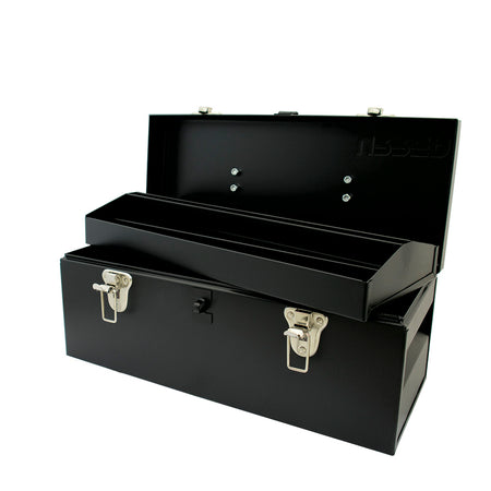 Caja portaherramientas metálica con asa metálica color negro 17" x 7" x 7" Urrea D4C20