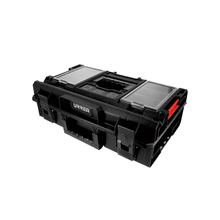 Caja portaherramientas plástica modular con compartimentos color negro 23" x 15" x 7", URREA