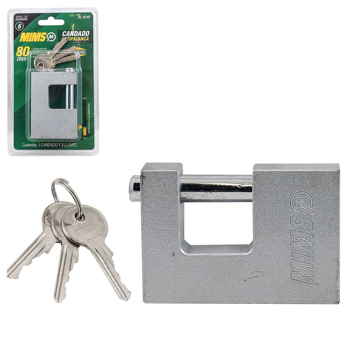 CANDADO ANTIPALANCA DE ACERO 80MM C/3 LL