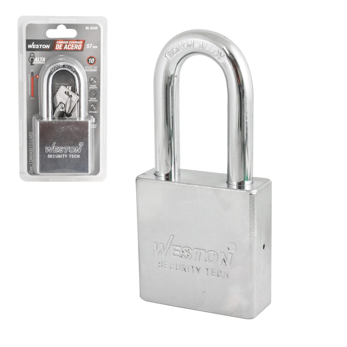 CANDADO CUADRADO ACERO GANCHO BORO ALTA SEGU 57MM G. LARGO 2 LLAVES (CAJA C/6 PZAS - PRECIO X PIEZA), WESTON