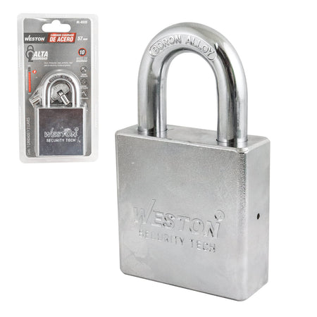 CANDADO CUADRADO D/ACERO GANCHO D/BORO D/ALTA SEGU. 57MM C/2 LLAVES (CAJA C/6 PZAS - PRECIO X PIEZA), WESTON