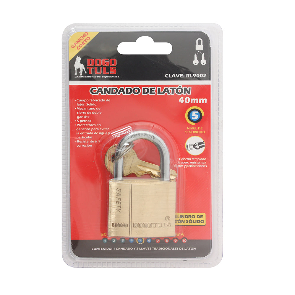 CANDADO DE LATON 40MM GANCHO CORTO DOGOTULS RL9002