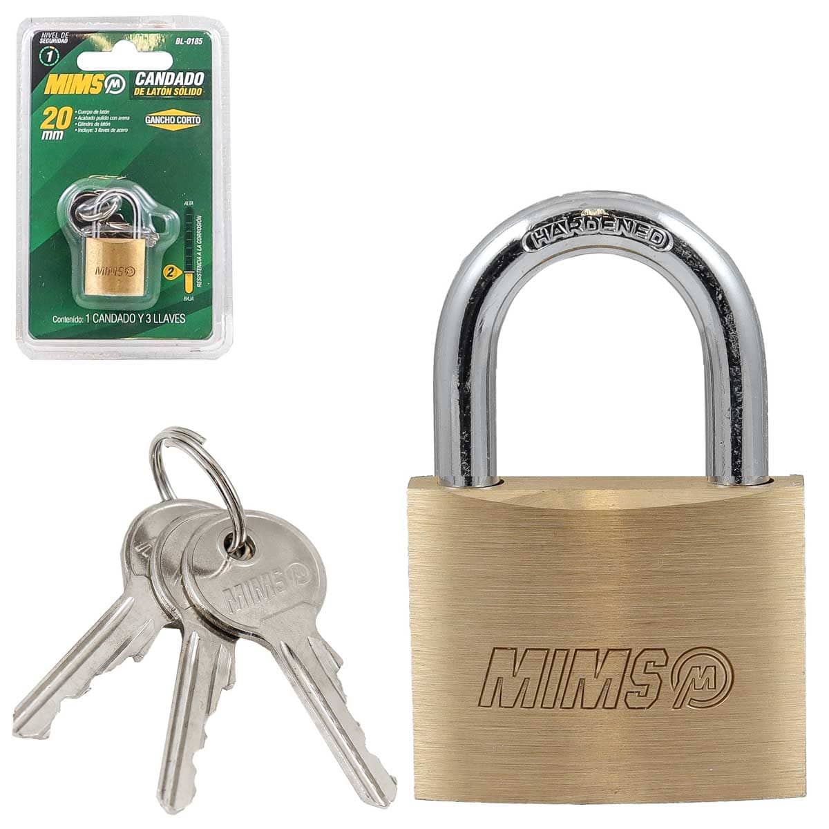 CANDADO DE LATÓN SÓLIDO 20MM C/3 LLAVES