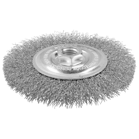 Carda circular ondulada alambre delgado acero inoxidable 6" x 0.30 mm con rosca M14, SURTEK