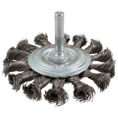 Carda circular trenzada alambre fino de acero inoxidable 3" x 0.35 mm con zanco 1/4", URREA