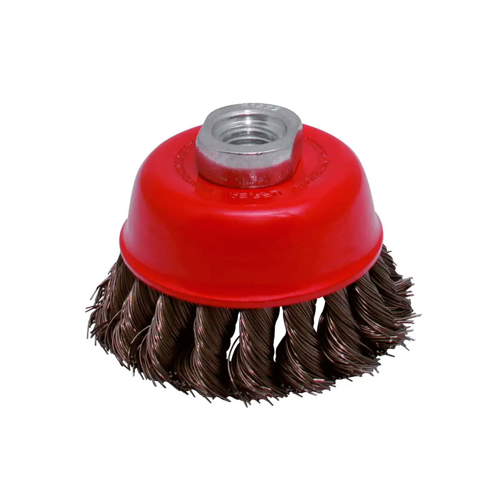 Carda copa trenzada alambre delgado 3" x 0.35 mm con rosca M14 Urrea C801