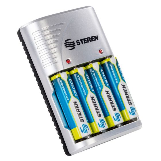 CARGADOR DE BATERIAS AA/AAA/9V C/4 PILAS , INCLUYE 4 PILAS AA STEREN
