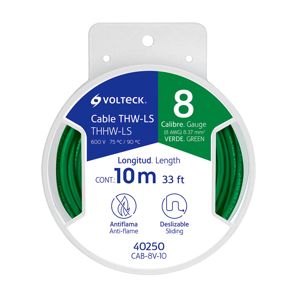 Carrete con 10 m de cable THHW-LS 8 AWG verde, Volteck