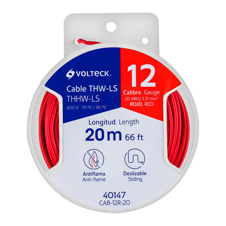 Carrete con 20 m de cable THHW-LS 12 AWG rojo, Volteck