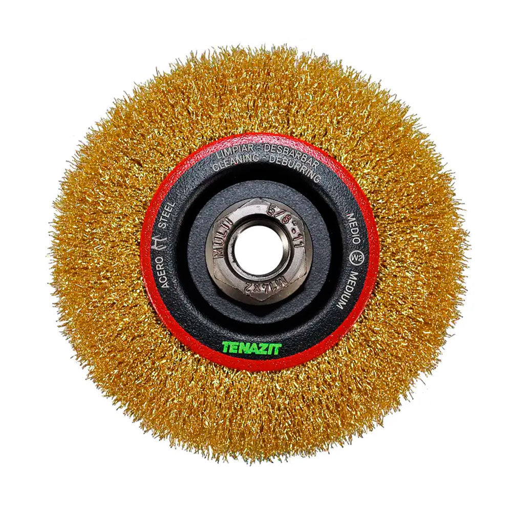 Cepillo circular ondulado de 115 x 0.30 x MR mm para limpieza de superficies metálicas y remoción de soldadura, pintura, corrosión, fundición y cualquier adherencia (4-1/2" x 0.012" x MR), AUSTROMEX