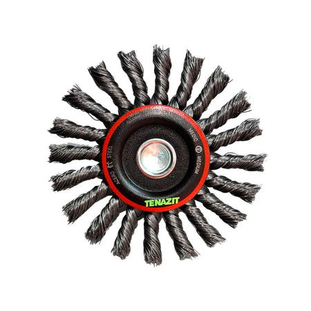 Cepillo circular trenzado con vastago de 100 x 0.37 x 6.4 mm para limpieza de superficies metálicas y remoción de soldadura, corrosión, fundición, plástico y cualquier adherencia (4" x 0.015" x 1/4"), AUSTROMEX