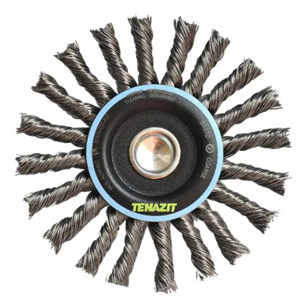 Cepillo circular trenzado con vastago de 100 x 0.50 x 6.4 mm para limpieza de superficies de acero inoxidable y remoción de soldadura, pintura, corrosión, fundición y cualquier adherencia (4" x 0.020" x 1/4"), AUSTROMEX