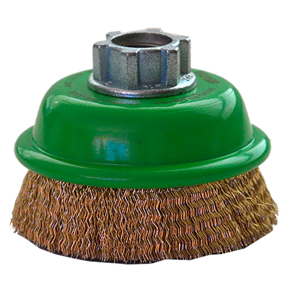 Cepillo tipo copa ondulado de 75 x 0.30 x MR mm para limpieza de superficies metálicas y remoción de soldadura, pintura, corrosión, fundición y cualquier adherencia (3" x 0.012" x MR), AUSTROMEX