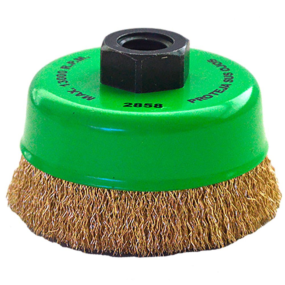 Cepillo tipo copa ondulado de 75 x 0.30 x MR mm para limpieza de superficies metálicas y remoción de soldadura, pintura, corrosión, fundición y cualquier adherencia (3" x 0.012" x MR), AUSTROMEX