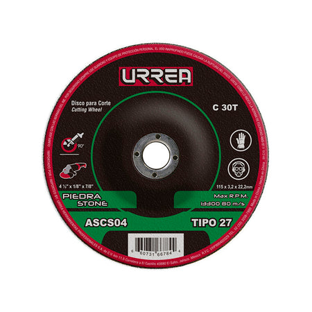Disco abrasivo tipo 27 para piedra 4-1/2" x 1/8" Urrea ASCS04