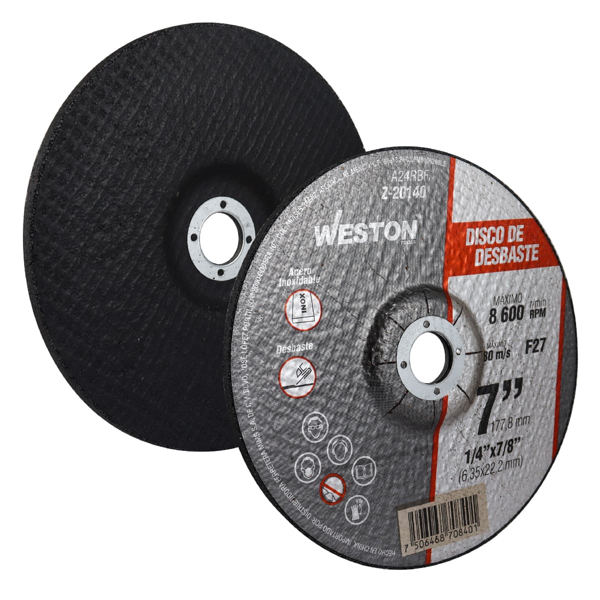 DISCO D/DESBASTE P/INOXIDABLE 7 x 1/4(6.35) x 7/8 F27, WESTON
