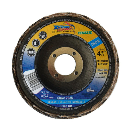 Disco laminado, especificación INOX POWER - 60 , grano , de 115 x 22.23 mm (4-1/2" x 7/8"), AUSTROMEX