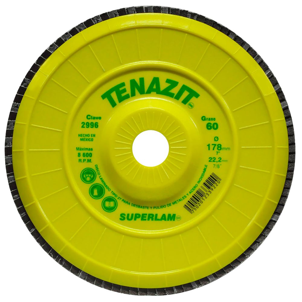 Disco laminado, especificación SUPERLAM Z60, grano zirconio, de 180 x 22.23 mm (7" x 7/8"), AUSTROMEX