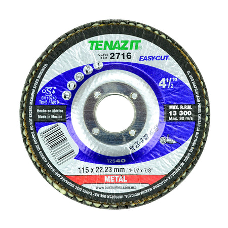 Disco laminado, especificación TZS - 40, grano zirconio, de 115 x 22.23 mm (4-1/2" x 7/8"), AUSTROMEX