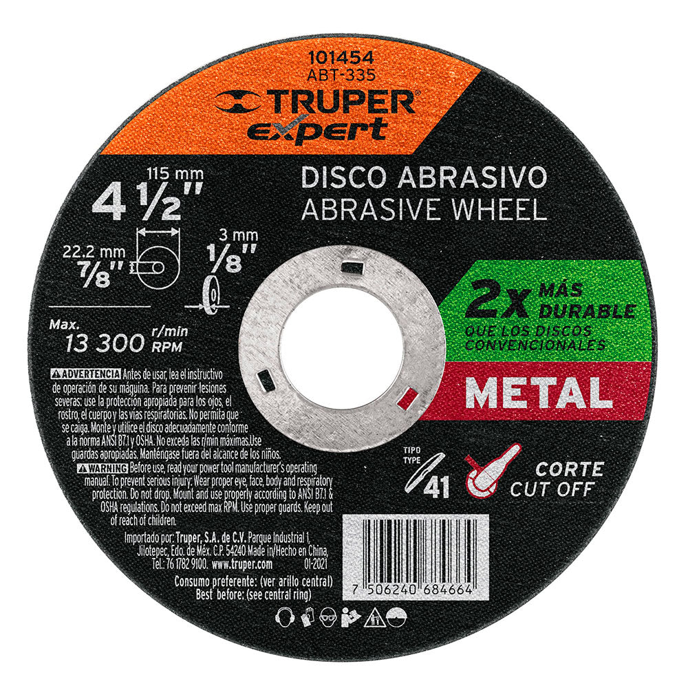 Disco para corte de metal 4-1/2' tipo 41, Truper Expert