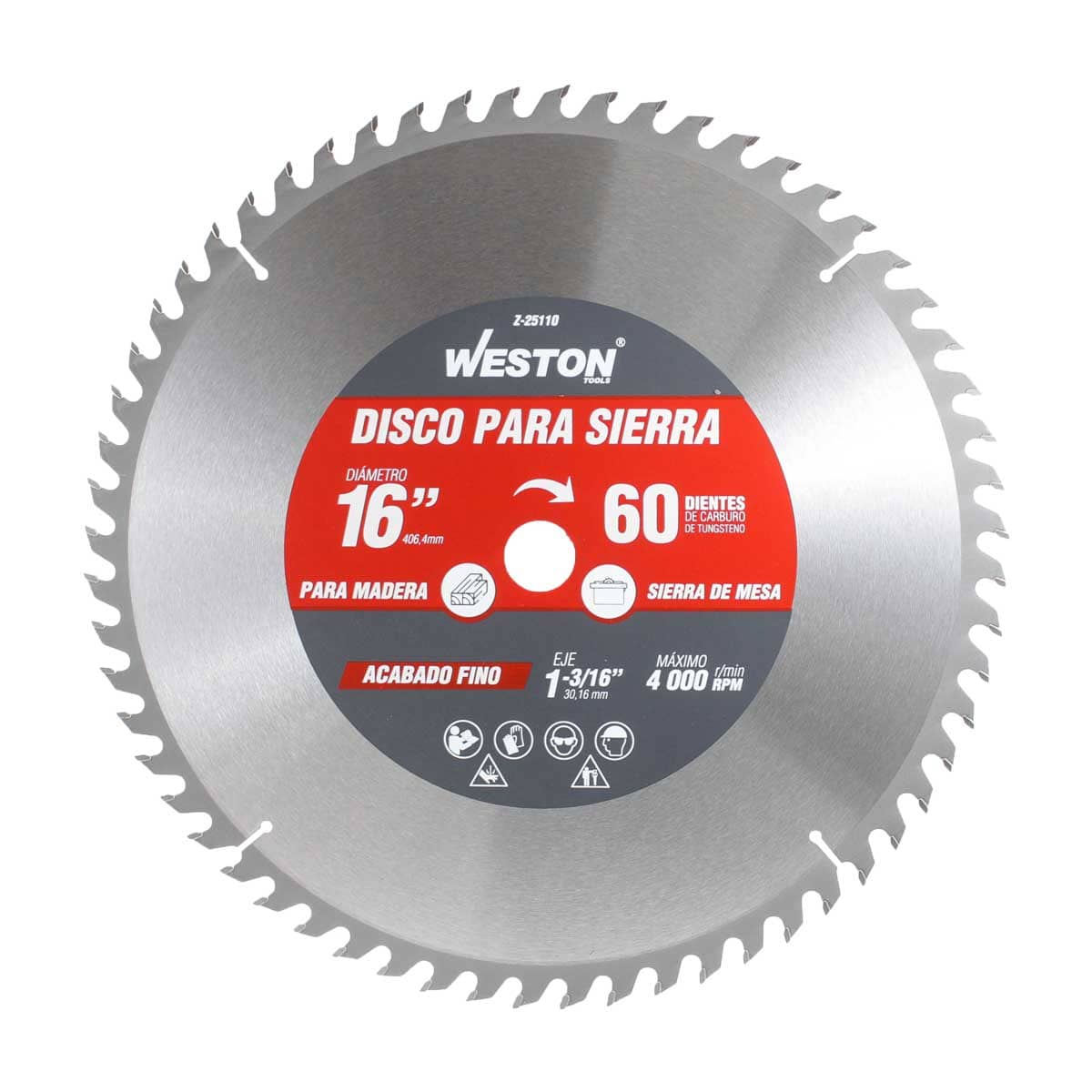 DISCO PARA SIERRA CIRCULAR P/MADERA 16 X 1-3/16 60DT BUJE 25MM & 1", WESTON