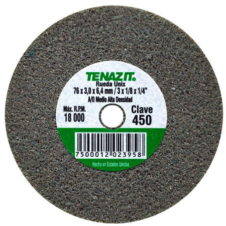 Disco unix de óxido de aluminio grano grueso de 76 x 3 x 6.4 mm (3" x 1/8" x 1/4"), AUSTROMEX