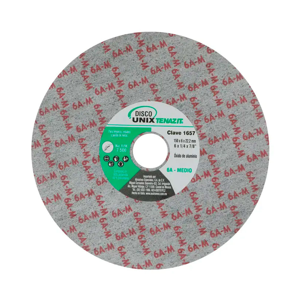 Disco unix de óxido de aluminio grano medio de 150 x 6 x 22.2 mm (6" x 1/4" x 7/8"), AUSTROMEX