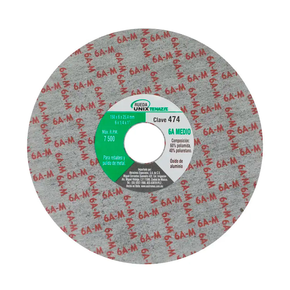 Disco unix de óxido de aluminio grano medio de 150 x 6 x 25.4 mm (6" x 1/4" x 1"), AUSTROMEX