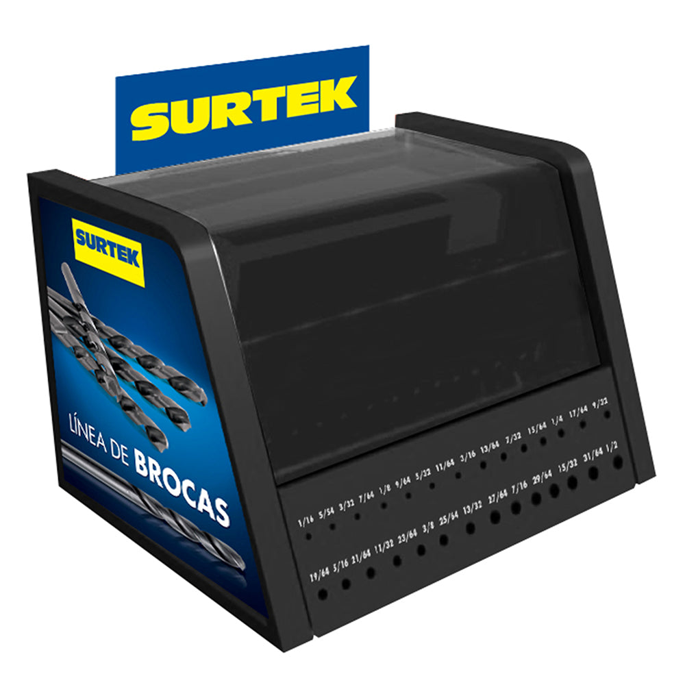 Exhibidor con brocas de cobalto de acero de alta velocidad, 526 piezas Surtek EXBROCAS