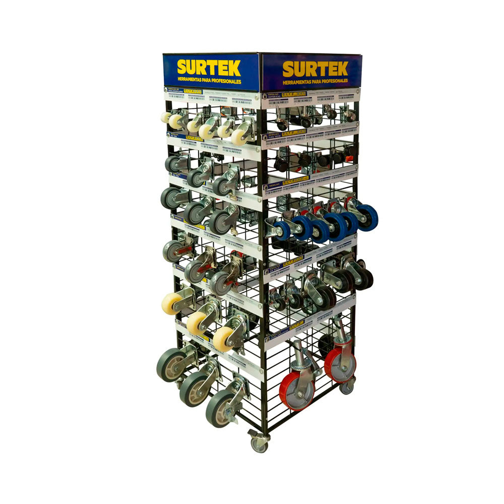 Exhibidor de piso para ruedas y rodajas, SURTEK