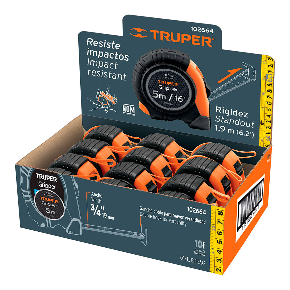 Flexómetro Gripper 5 m cinta 13 mm display box con 12 piezas