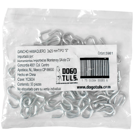 GANCHO HAMAQUERO 3x25mmTIPO "S", DOGOTULS