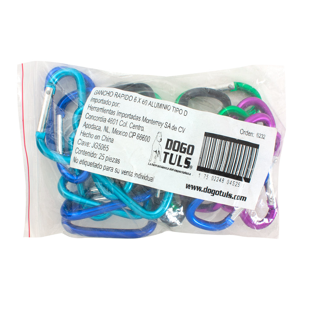 GANCHO RAPIDO 6 X 60 ALUMINIO TIPO D, DOGOTULS
