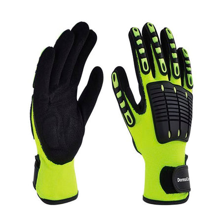 GUANTE DE NYLON FLOURECENTE, PVC Y NITRILO (TALLA 9, GRANDE PRECIO POR PAR) DERMACARE