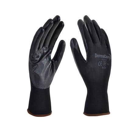 GUANTE NYLON NEGRO PALMA NITRILO SOLIDO TALLA 8 "MEDIANO" (PRECIO X PAR) DERMACARE