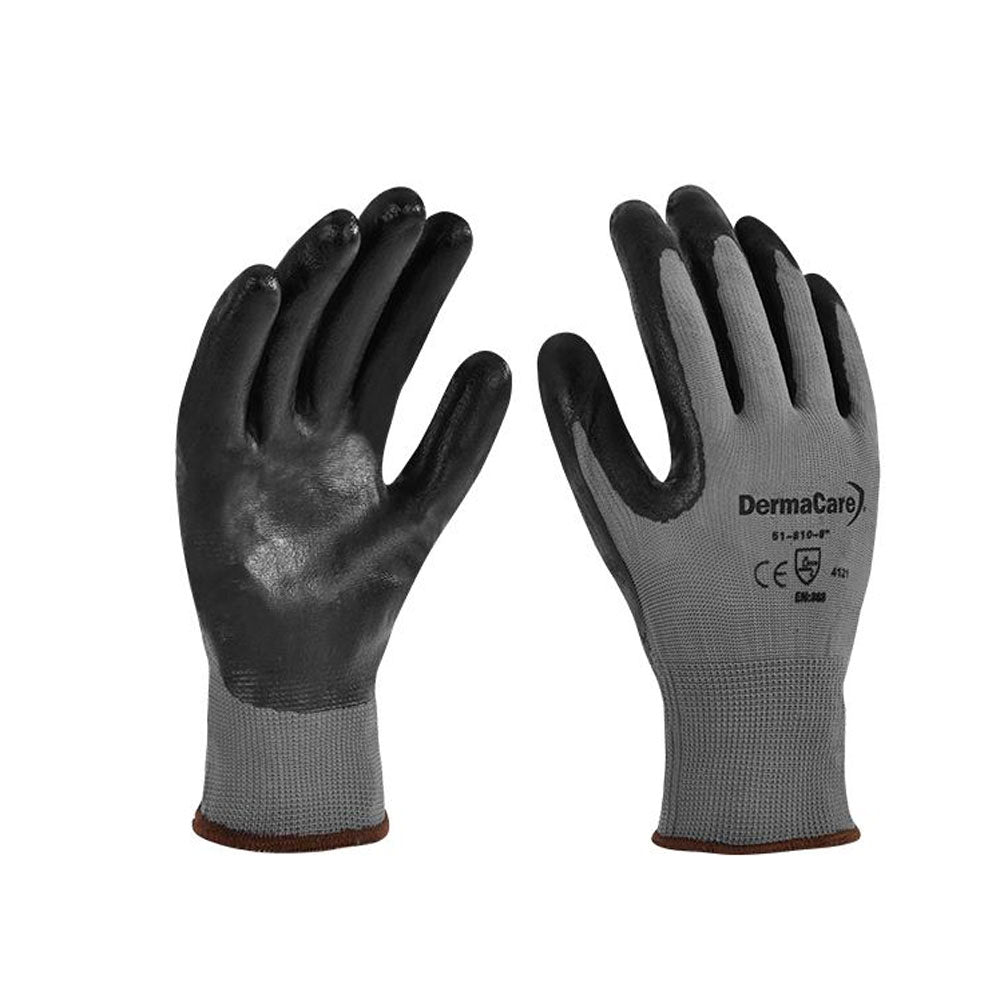 GUANTE POLIESTER GRIS CON PALMA NITRILO EXTRA CHICO (TALLA 6, PRECIO POR PAR) DERMACARE