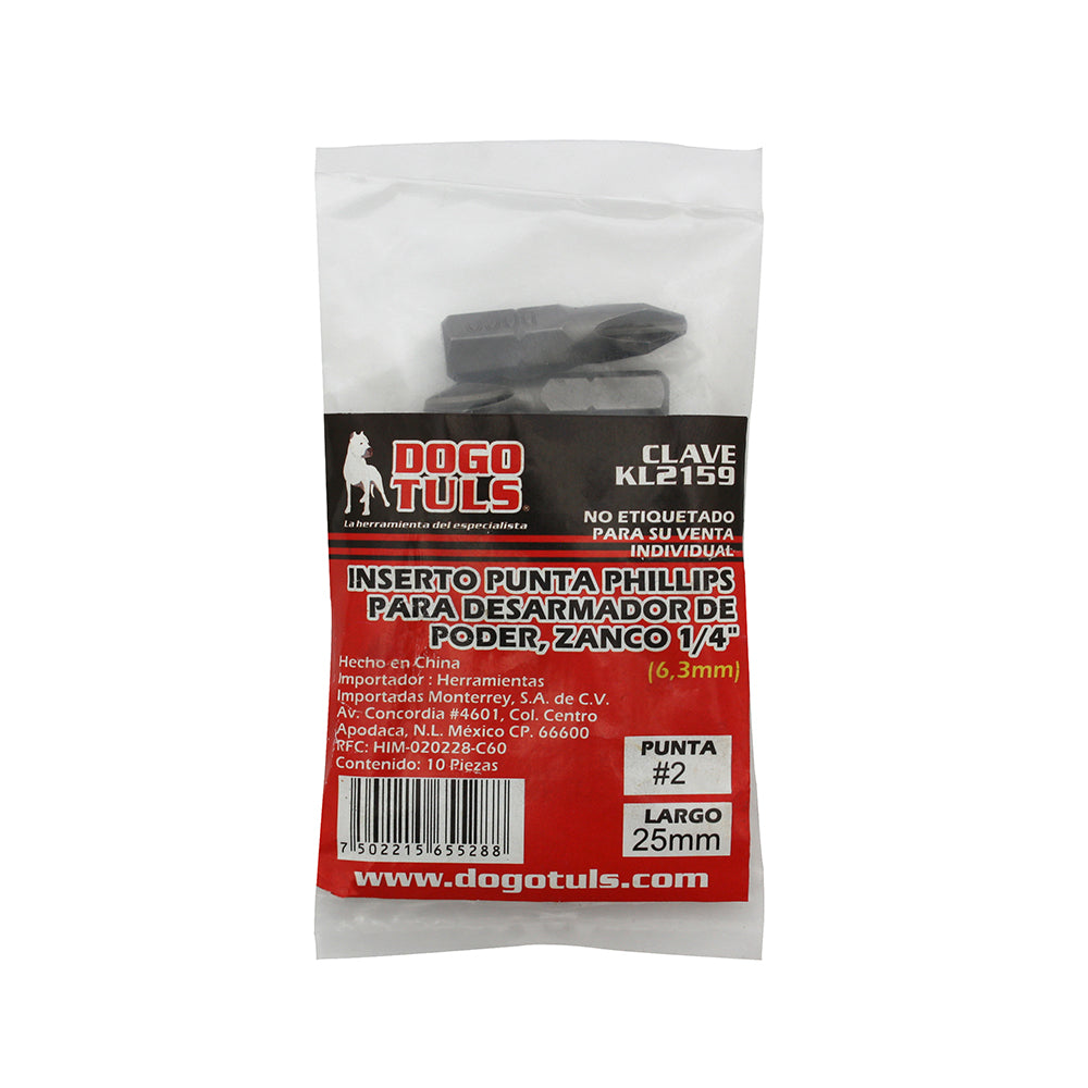 INSERTOS PUNTAS PHILLIPS #2 25mm ZN 1/4" DOGOTULS KL2159