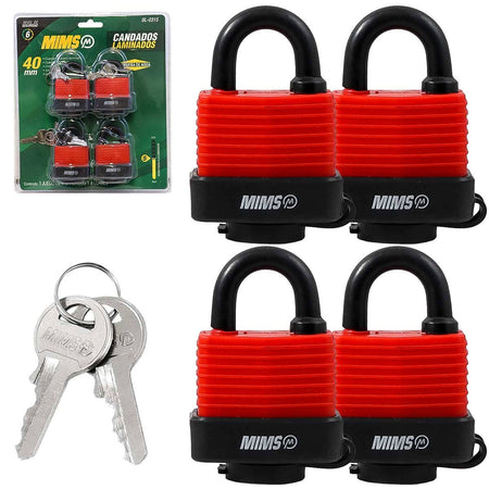 JGO 4PZS CANDADO D/ACERO PRUEBA D/AGUA CUERPO LAMIN. 40MM C/8 LLAVES (CAJA C/3 JGOS - PRECIO X JGO), WESTON