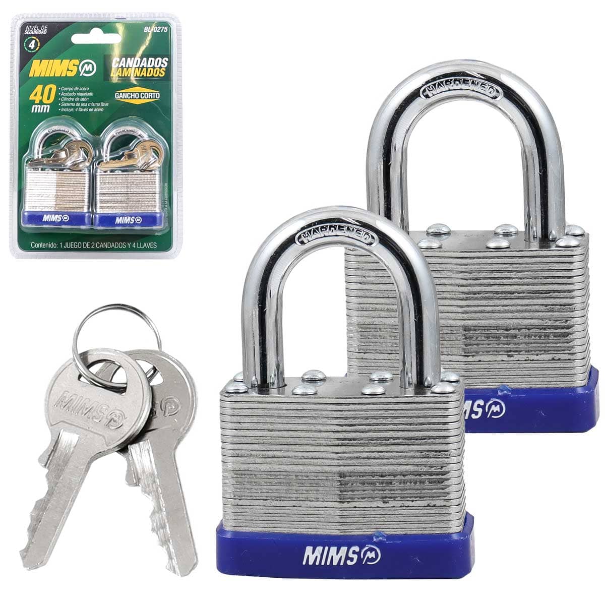JGO. DE 2 CANDADOS DE ACERO CUERPO LAMINADO 40MM C/4 LLAVES (CAJA C/6 PZAS - PRECIO X PIEZA), WESTON