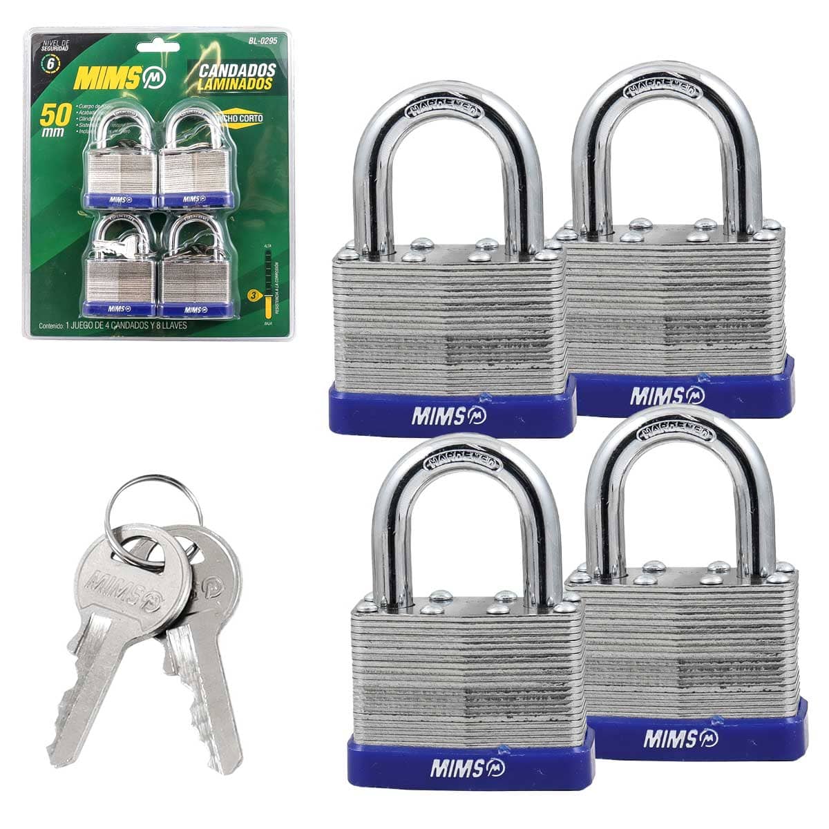 JGO. DE 4 CANDADOS DE ACERO CUERPO LAMINADO 50MM C/8 LLAVES (CAJA C/3 JGOS - PRECIO X JGO), WESTON