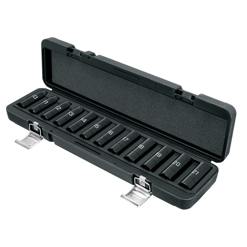 Juego de 12 dados largos de impacto cuadro 1/2', 6 puntas mm