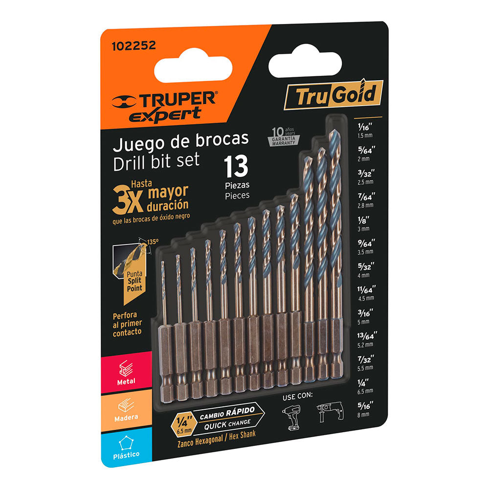 Juego de 13 brocas HSS p/metal zanco cambio rápido, Expert