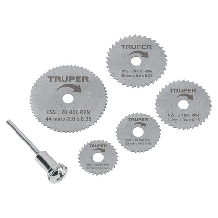 Juego de 5 mini discos sierras para mototool, Truper