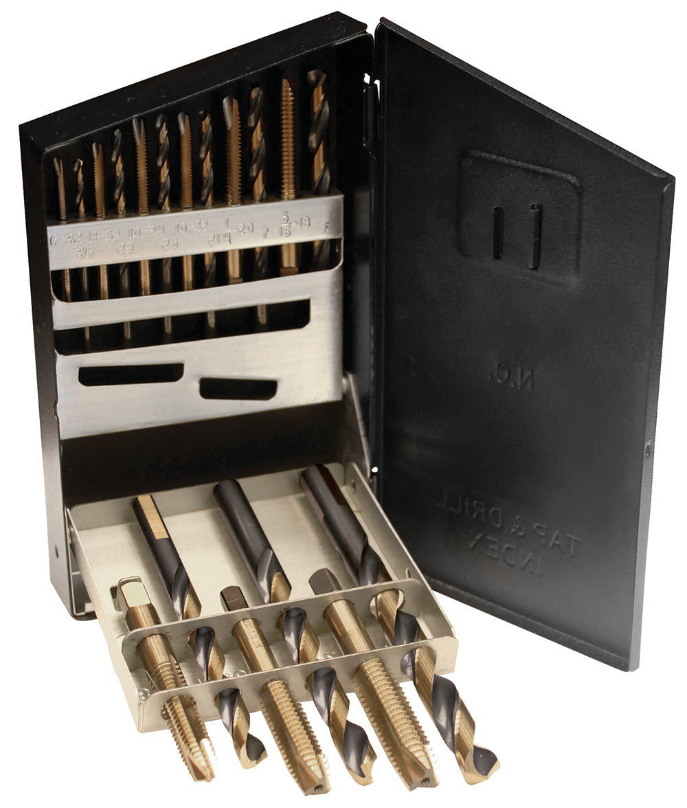 Juego de brocas premium y machuelos de acero de alta velocidad, 18 piezas en caja metálica Urrea H5118MC
