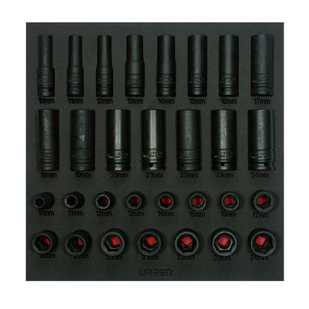 Juego de dados de impacto cortos y largos métricos cuadro de 1/2" 30 piezas, CH219-C Urrea CH219